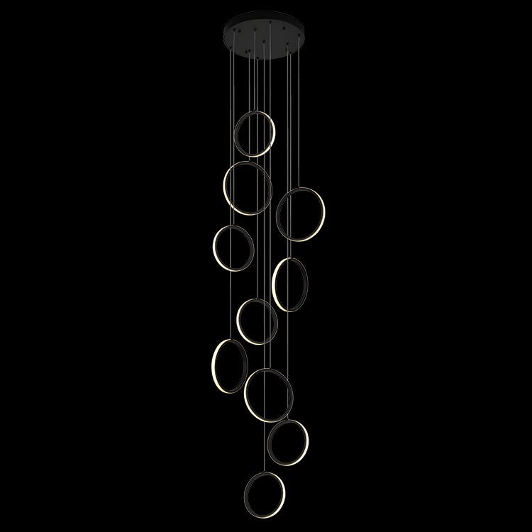 The Ringfall Black LED Pendant Light Warm White is a modern lighting solution designed to enhance spacious environments. With its sleek black finish and integrated 80W LED lamp, it provides efficient and stylish lighting. Perfect for those who appreciate contemporary elegance in their interiors, it fits seamlessly in high-ceiling areas, casting a warm and inviting glow.