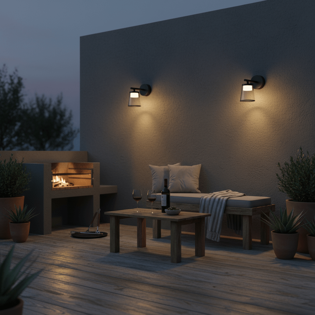 Illuminate your home entrance with the warm glow of this LED wall light, providing both style and security.