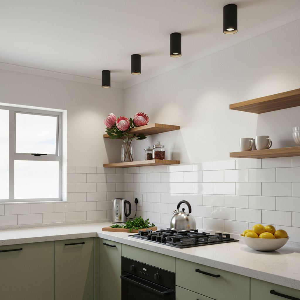 Achieve a contemporary look in living rooms with stylish downlighting.