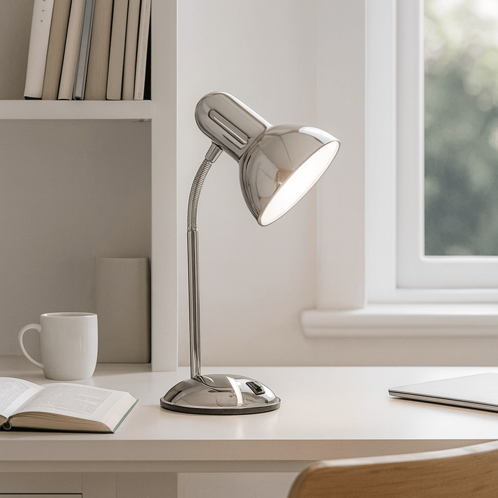 Satin Chrome Desk Lamp with Switch