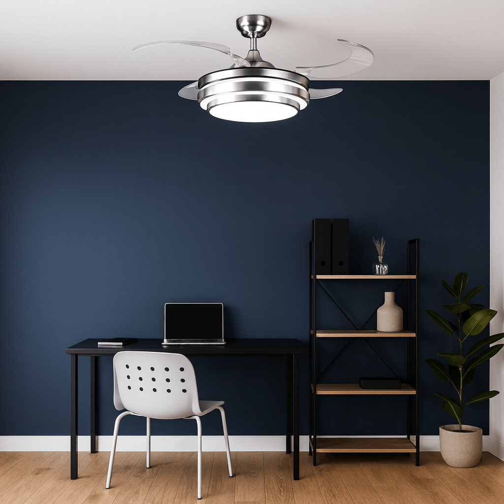 Retract blades when not in use to save space while enjoying bright LED lighting and targeted airflow in your studio apartment.