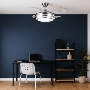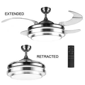 The Satin Chrome, Steel and Acrylic LED Ceiling Fan combines modern aesthetics with cutting-edge technology, making it a perfect addition to any contemporary space. Its retractable blades and integrated LED lighting ensure both style and efficiency. Enjoy peace of mind with a 2 Year Warranty!