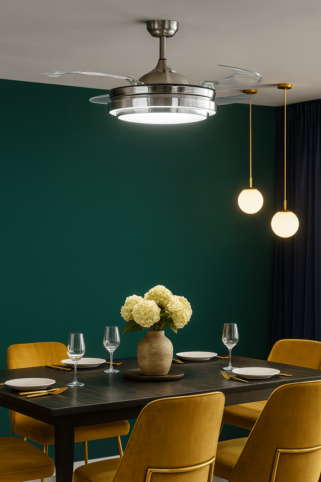 Dim the 32W LED to set a soft dinner mood and adjust fan speed remotely to keep guests comfortable.