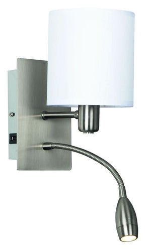 Satin Chrome Wall Light with White Shade – Elegant Illumination for Modern Spaces