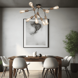 The Sebastian 9 Light Ceiling Light brings sophisticated style to your home with its stunning black and brass finishes. An elegant statement piece with nine lights, it illuminates any room with an air of luxury and exclusivity. Perfect for making a statement wherever it is placed, the Sebastian light is sure to be a conversation starter.
