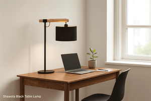 Position the Shawela lamp on your desk for bright, focused light during work calls and document reviews.