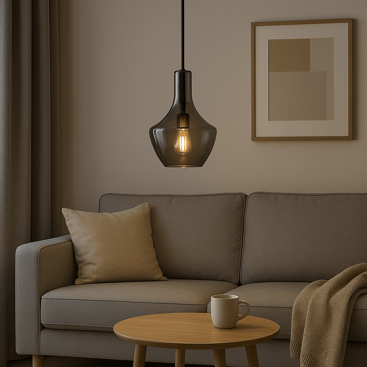 - Elegant smoked glass shade