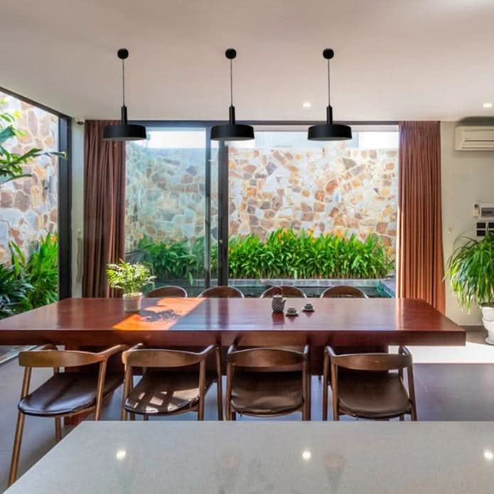 Position bottom of pendant 750mm above dining table surface for balanced light and clear sightlines.