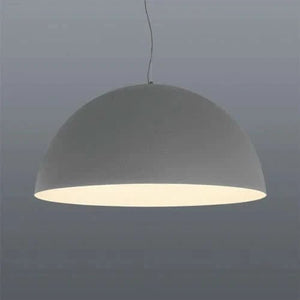 The Spazio Sand Grey Pendant Light is crafted from high-quality aluminium with a white inner surface.