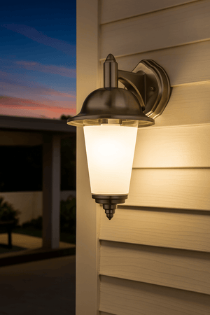 Ensure safety and visibility at entrances with this durable lighting solution.