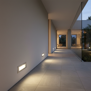 Rated IP44, it’s well suited to covered outdoor areas and sheltered walkways, while also working beautifully indoors on staircases, passages, and entrance steps. The integrated LED array gives an even glow without glare, helping improve visibility and safety after dark.