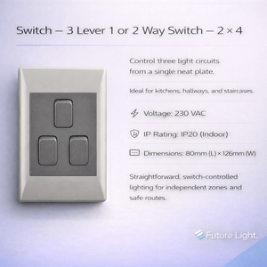 This switch suits busy kitchens and hallways. In kitchens it lets you separate ceiling lights from island pendants or under-cabinet lighting so you can light prep and dining areas independently. In hallways and on staircases, the extra levers and two-way option make it simple to light routes from different points, giving clear, safe paths without extra switches. It's a neat, low-profile way to keep everyday zones useful.