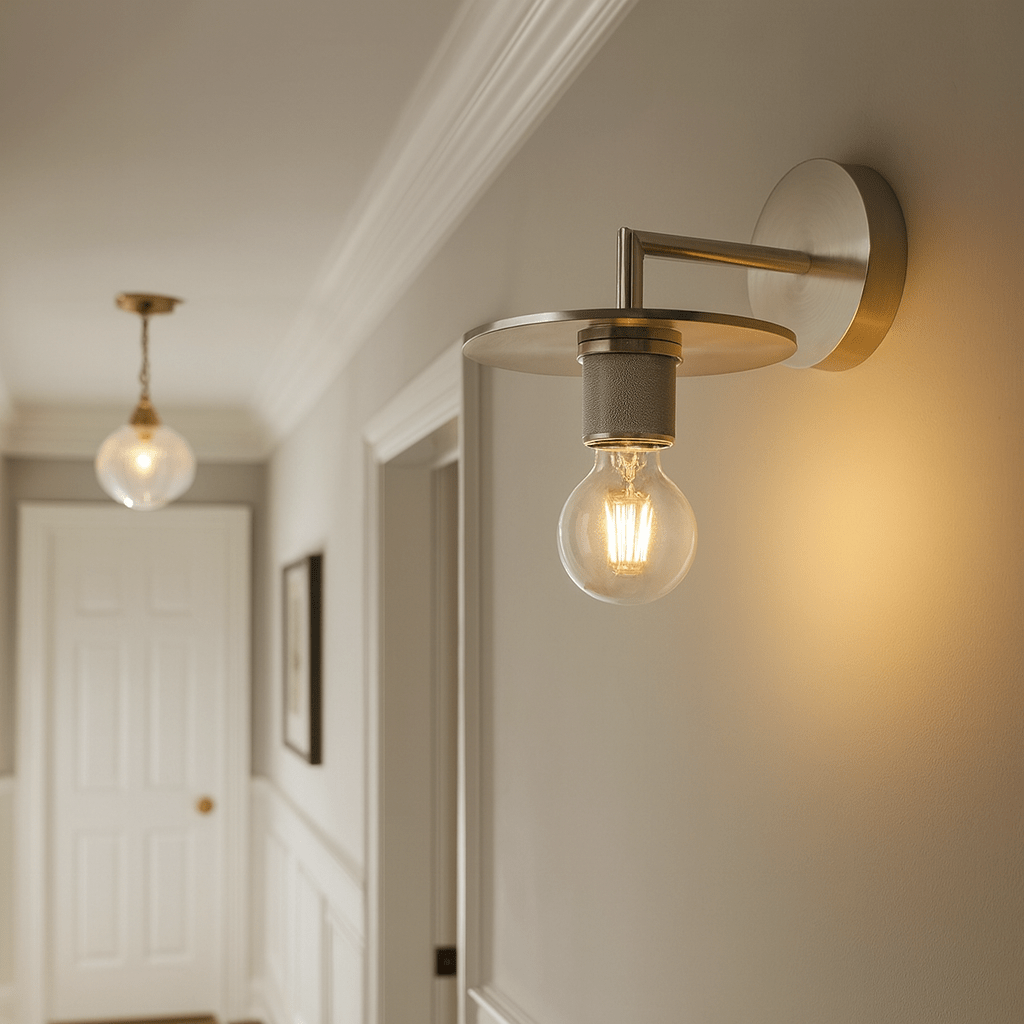 Illuminate hallway artwork or architecture with the stylish design of this wall light.