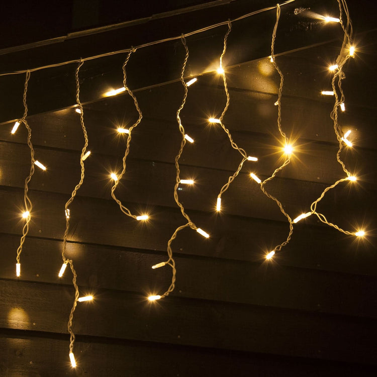 Twinkling Icicle Lights - Warm White, White Cable – Illuminate Your Space with Elegance