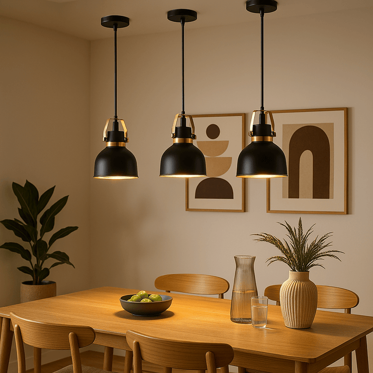 The Uma Black & Bronze Pendant Light offers a stylish blend of contemporary design and functional lighting. Its sleek metal construction and minimalist aesthetic make it a perfect addition to any modern interior, providing a sophisticated ambiance in kitchens, dining rooms, or entryways.
