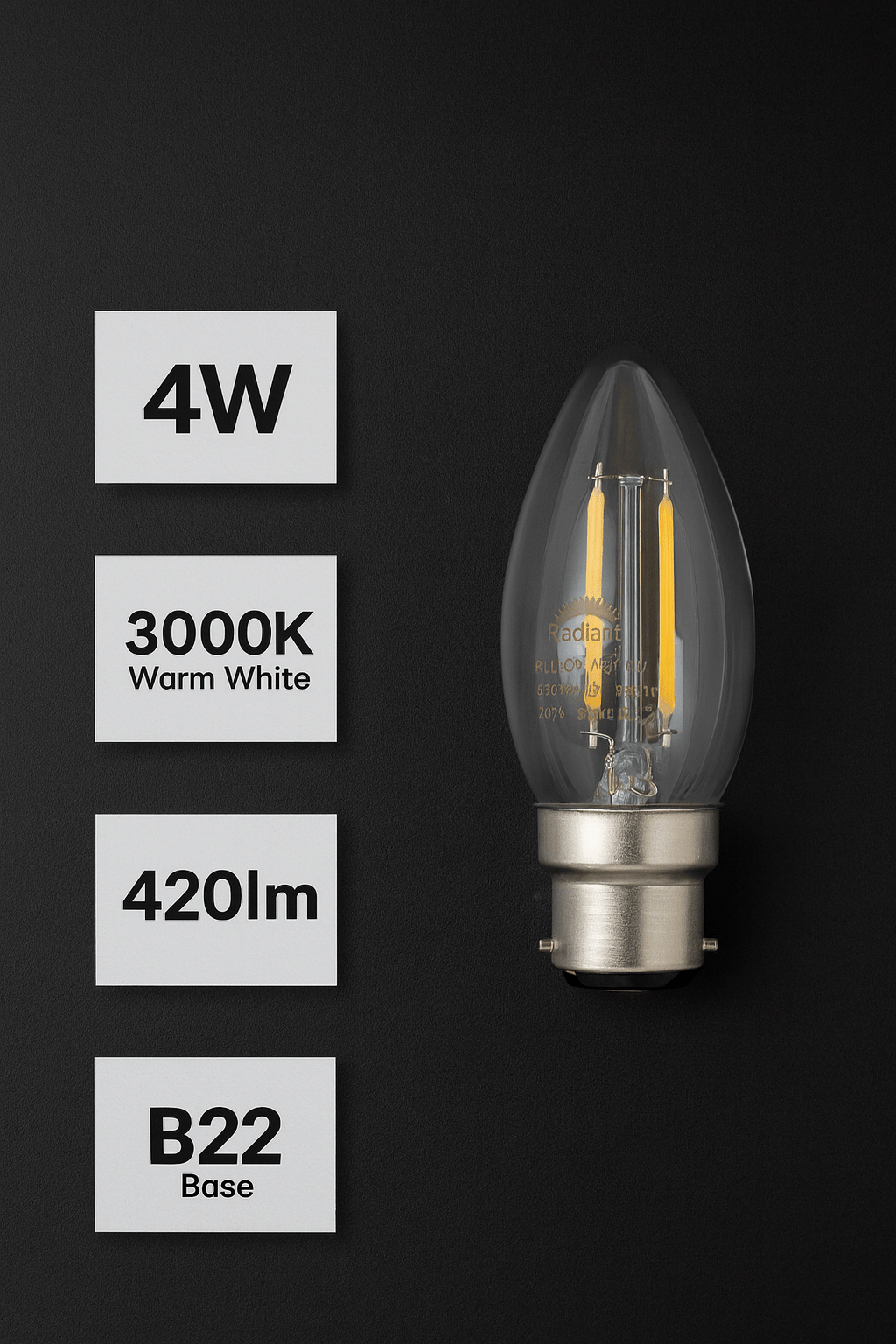4W LED B22 Candle Bulb - 3000K