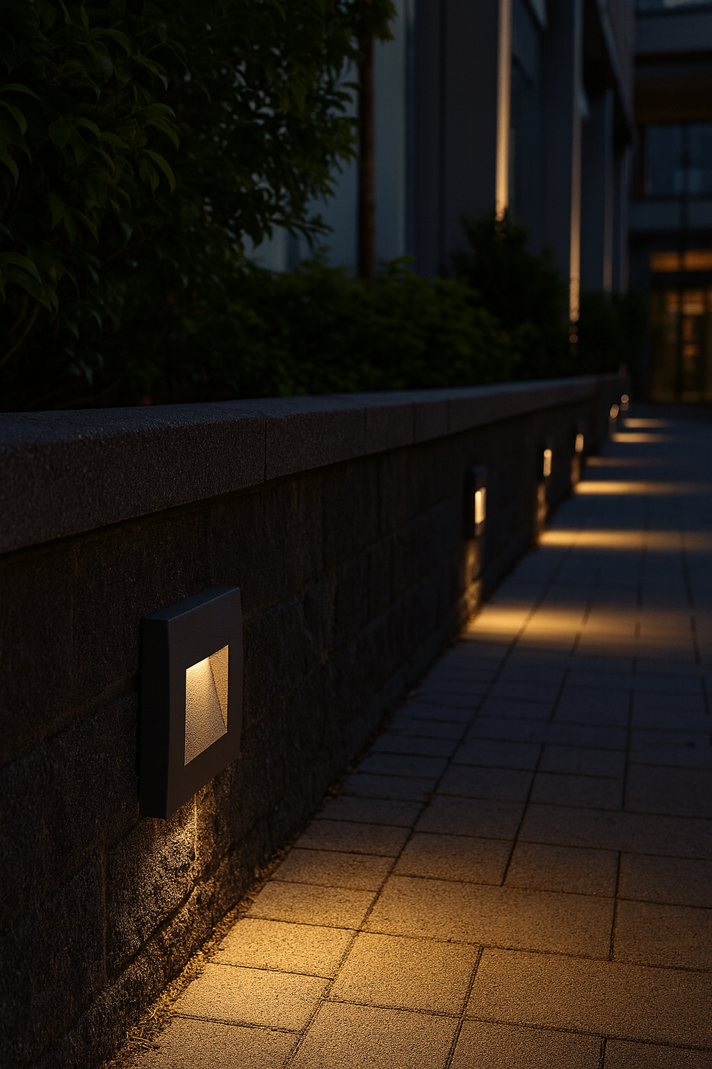 Highlight patio edges with a subtle glow, creating a cozy ambiance.