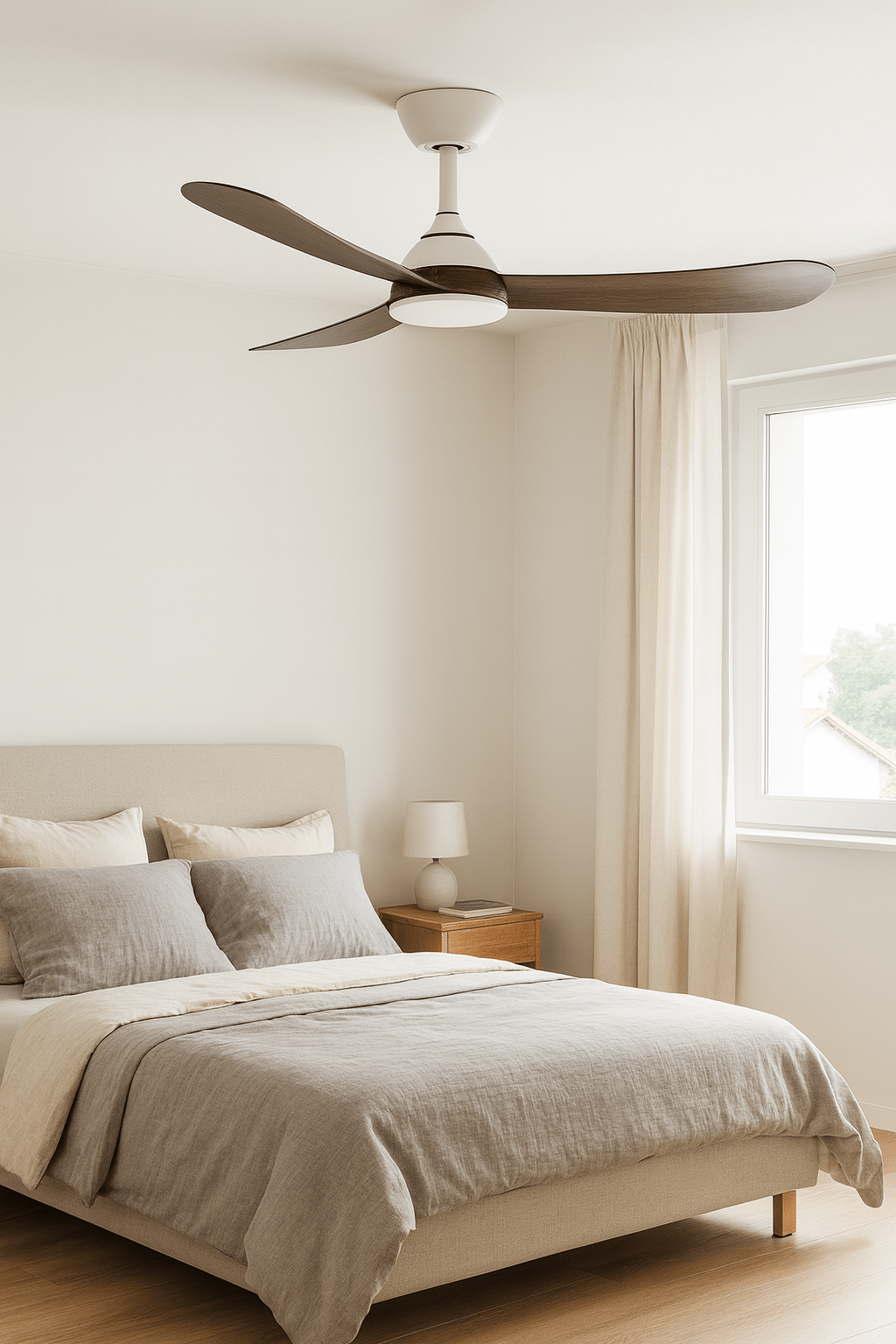 The White & Dark Wood Ceiling Fan is an ideal addition to South African homes, offering quiet airflow and modern style. With its powerful yet efficient 30W DC motor and reversible blades, it ensures comfort in any season. Crafted with a sophisticated blend of metal, ABS, and copper, this fan is designed for those who value both performance and sleek aesthetics.