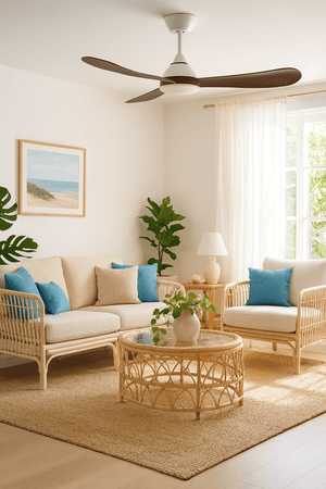 Boost your living room’s style and comfort with this elegant, efficient fan.
