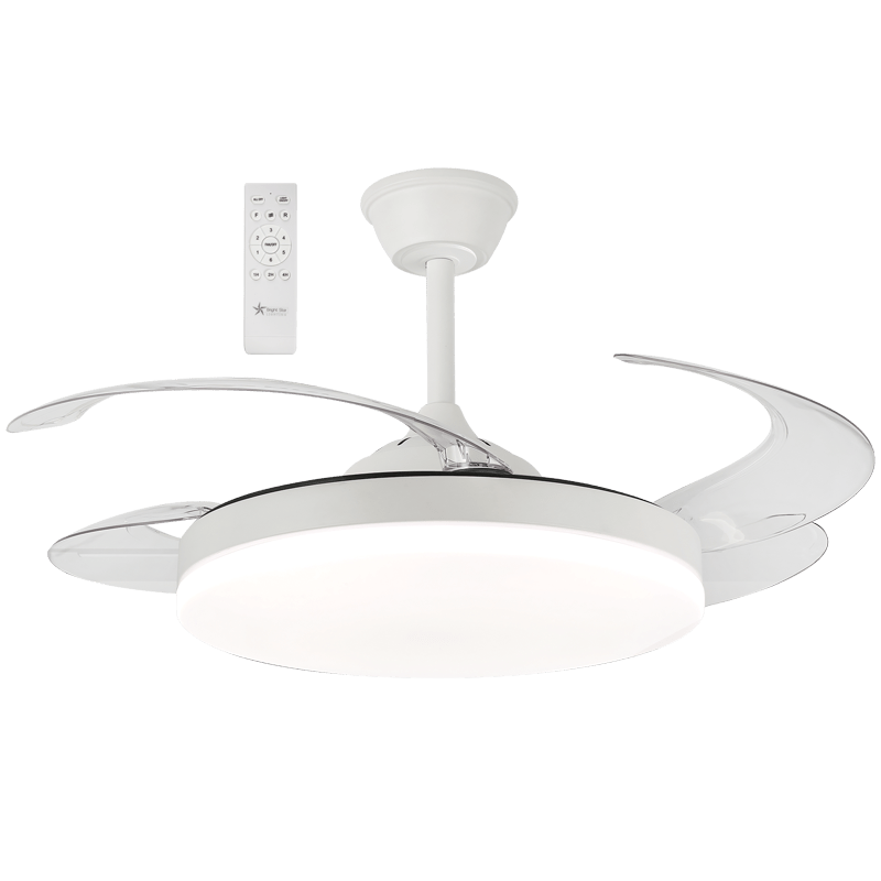 White Retractable LED Ceiling Fan – Versatile Cooling and Illumination