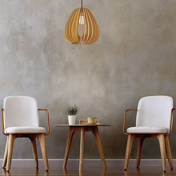 Enhance cafe or bistro spaces with a warm wooden pendant to elevate the rustic ambiance for patrons.