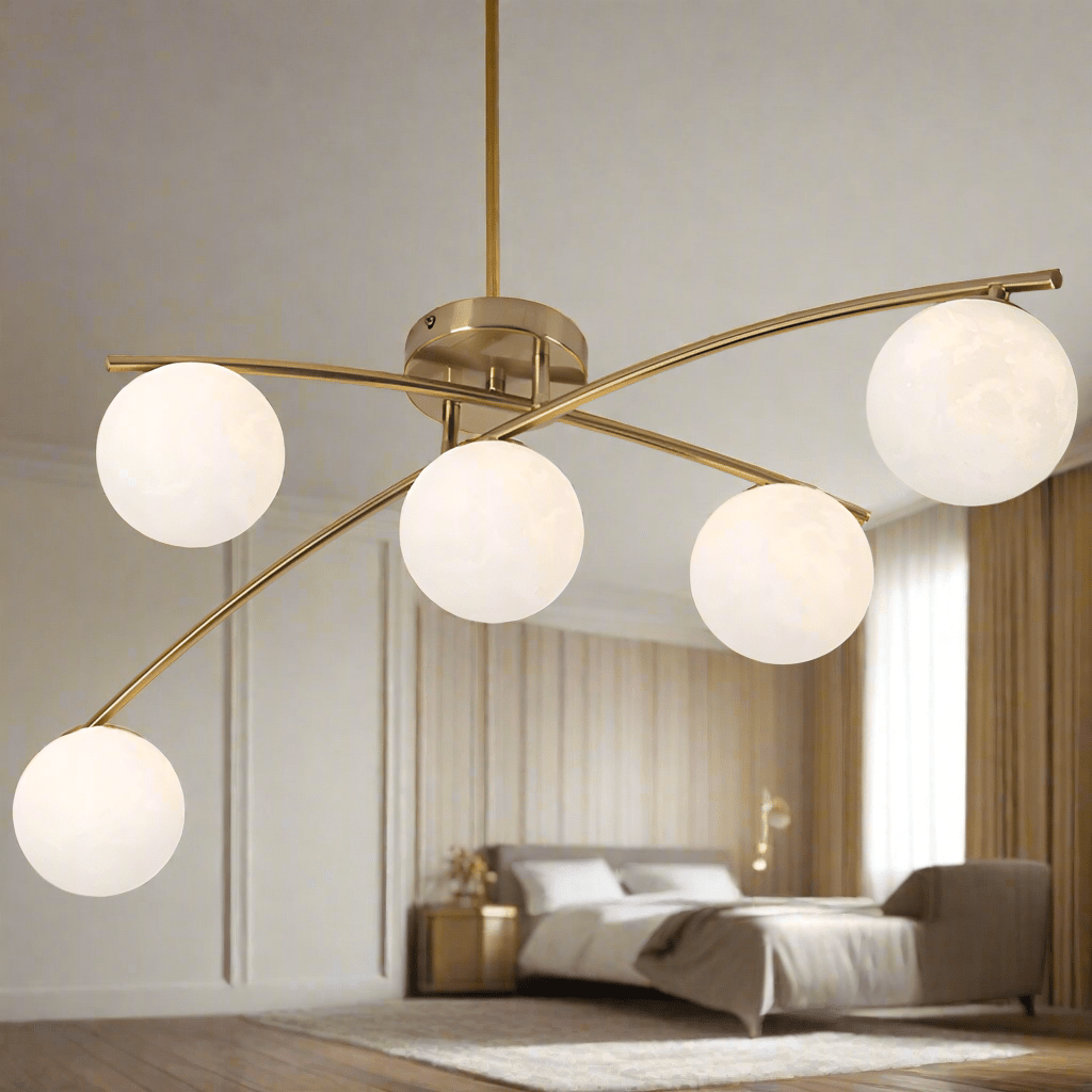 Enhance your living space with the Zizou Satin Brass Pendant Light, a masterpiece of modern design with its satin brass finish and versatile moveable arms. Perfect for adding a touch of luxury and sophistication to any room.